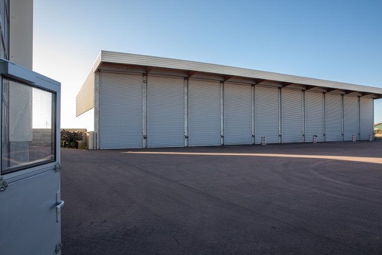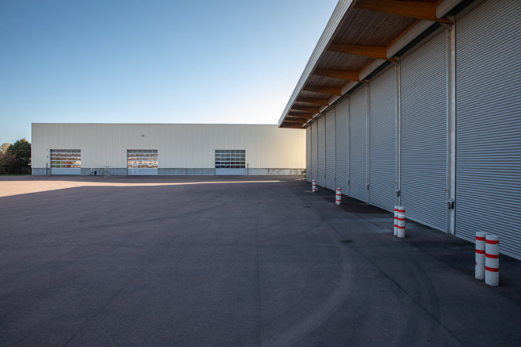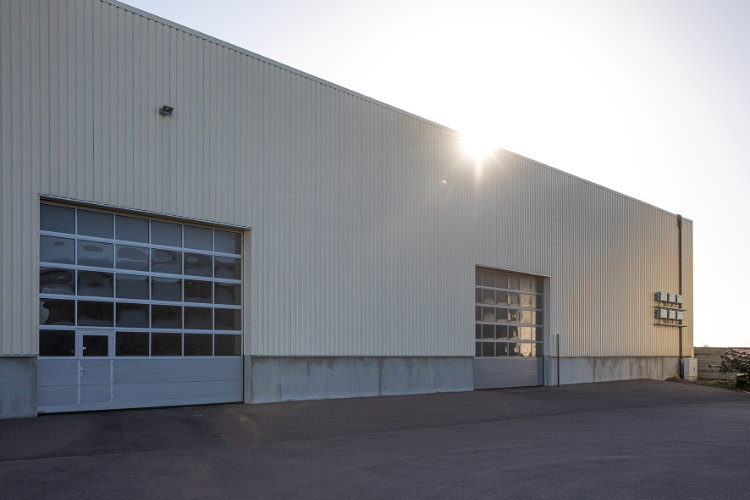 Die Herausforderung bei der Lagerhalle für Schüttgut war eine große Durchfahrtsbreite mit einer noch größeren Durchfahrtshöhe zu kombinieren, damit im Inneren die volle Hallenhöhe zur Entladung mit Kippfahrzeugen zur Verfügung steht. Dies war nur mit Rolltoren in den Abmessungen 5250 mm x 9300 mm möglich. In der Saatguthalle wurden 3 Sektionaltore mit verglasten Sektionen in der Größe 6050 mm x 5000 mm eingebaut. Eines der Tor mit einer Schlupftür, um einen schnellen Zugang zu ermöglichen. Alle Tore sind über E-Antriebe bedienbar.