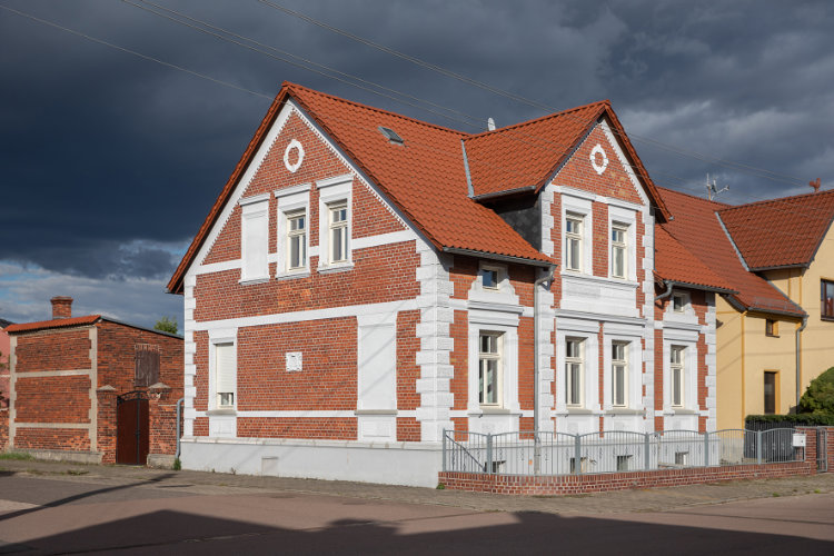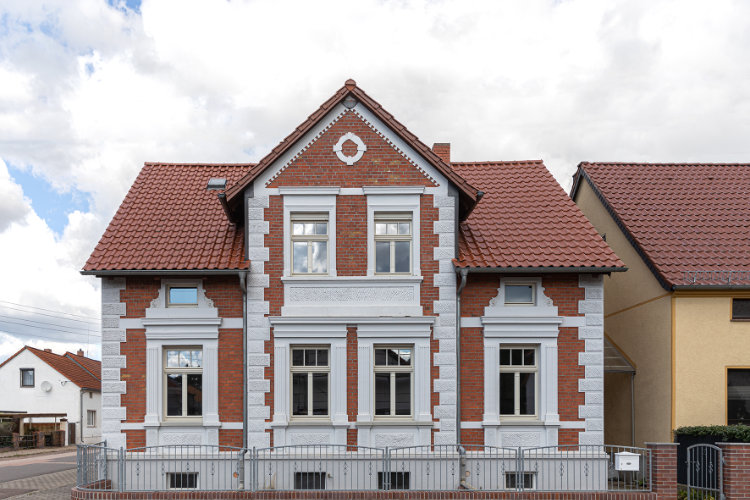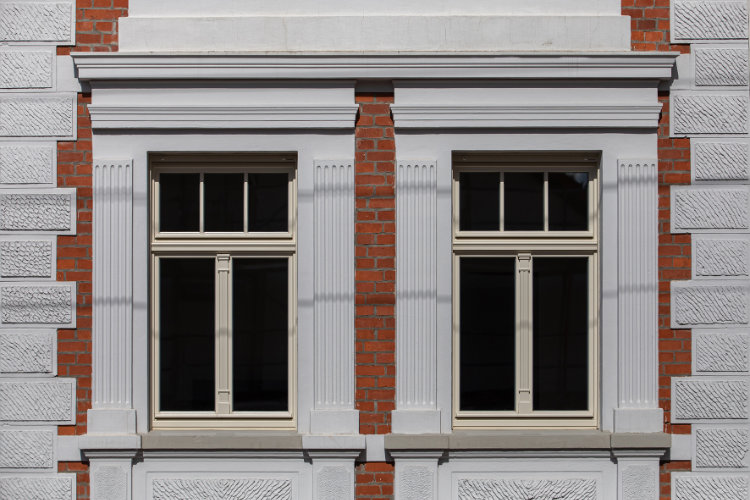 Bei diesem Gebäude wurden auf Kundenwunsch und in Absprache mit dem Landesamt für Denkmalschutz im Rahmen einer Grundsanierung Holzfenster im System IV78 D mit 3-fach Verglasung verbaut. Mit diesem Fensterprofil können sowohl die Denkmalschutzauflagen als auch die Anforderungen an eine energetische Sanierung eingehalten werden. Zusätzlich bekamen die meisten Fenster noch Aufsatzrollläden mit E-Antrieb und Funkbedienung. So kann man auch bei Erhalt der ursprünglichen Optik zeitgemäße Anforderungen an Funktion und Komfort erfüllen.